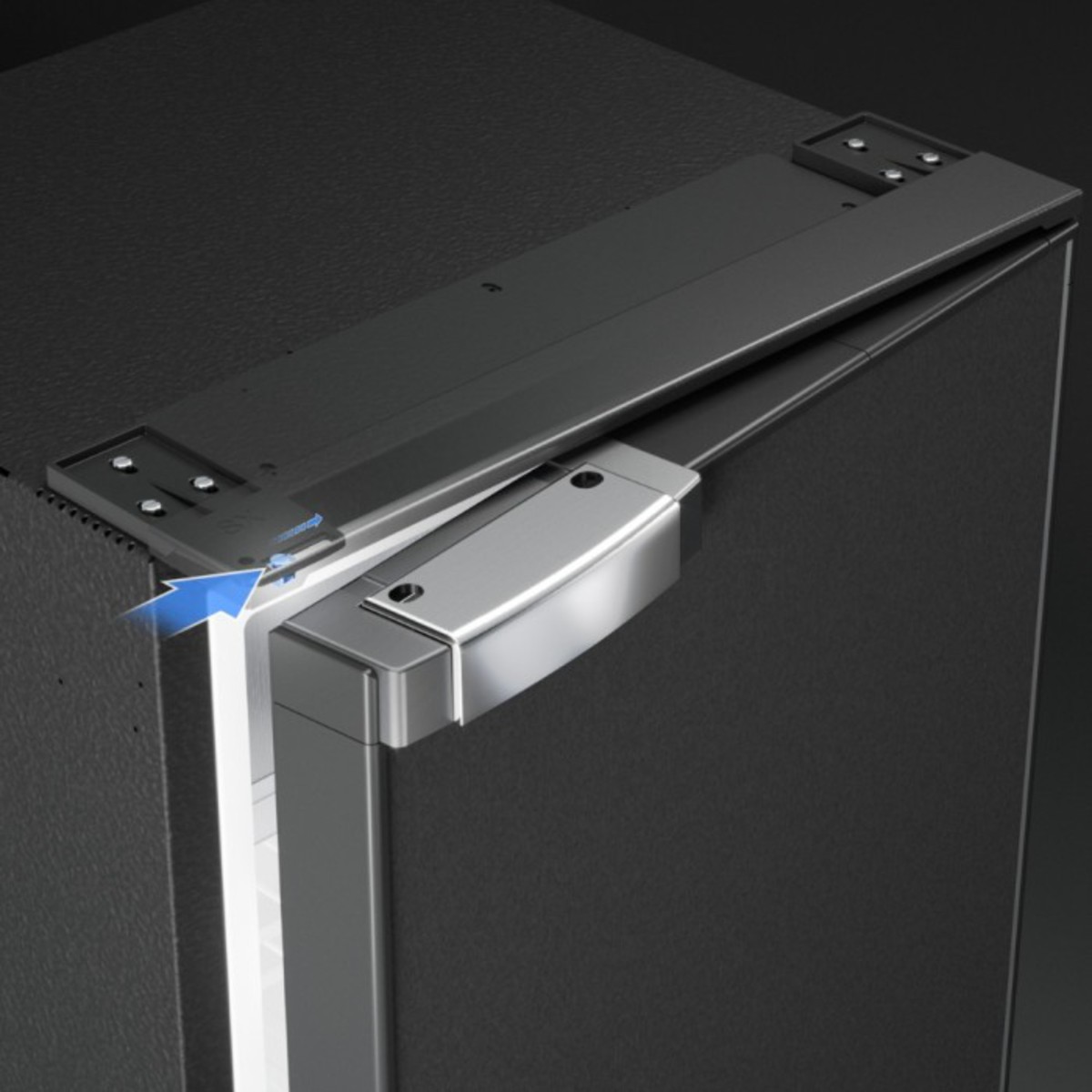 Part of the modern Chromelock series, this fridge-freezer is designed for both functionality and durability. The redesigned door is lighter and sturdier, with a customisable laminate panel (0.8 - 3.0 mm) to match interior decor. The matt black finish is anti-fingerprint and scratch-resistant, maintaining a sleek appearance even in demanding travel conditions. The enhanced Chromelock handle, tested for over 150,000 opening and closing cycles, ensures a secure positive seal and features the "Vent Position" system, allowing the door to remain slightly open when not in use to prevent mould and odour build-up.