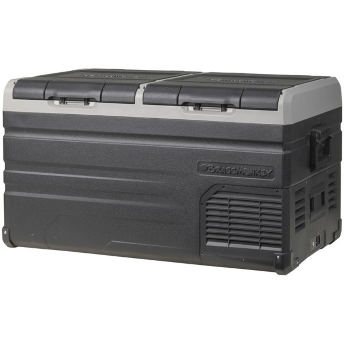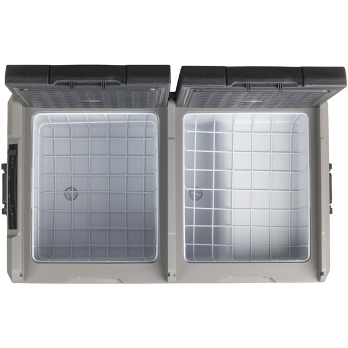 This 75 litre low profile fridge GH2080 has dual zones with separate lids and separate temperature control. It is compatible with optional onboard batteries and solar charging for completely independent operation without a vehicle or mains power.