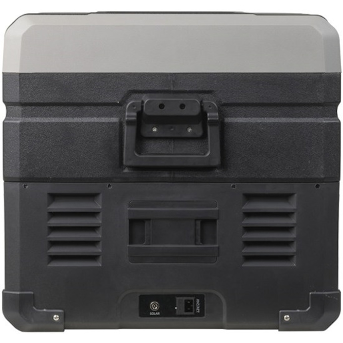 This low profile, dual zone, fridge/freezer is built to accommodate a lower vehicle roof height or lower storage location. Packed with features and enough space for extended trips, this model includes a separate lid for the fridge and freezer zones. Suitable for 12 or 24 volt systems, the unit features a three-stage low-battery cut-out to prevent a flat or damaged car or boat battery. Other features include a battery compartment and solar charging capable for operation independent of vehicle or mains power, digital temperature controls, a reliable compressor, and low energy consumption. Thanks to the high density foam insulation, the fridge can provide temperatures down to -20°C. Finished in a sleek, durable plastic case, it's the perfect companion to any trip. The unit is supplied with a power lead that plugs into a vehicle cigarette lighter socket and a mains power adapter.