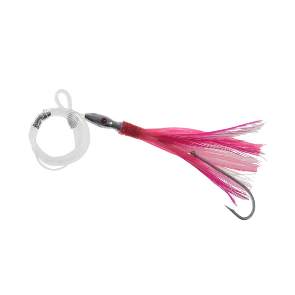 Trolls between 3-7 knots and comes pre-rigged with a single hook and 4ft of 100lb line. The lure's action drives fish wild as it moves enticingly in water - it won't take long before you have Skippies, Albacore and even Kahawai fighting over it! Available in a range of attractive colours to suit different fishing conditions.