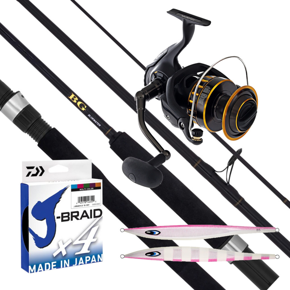 This offshore fishing combo pairs the heavy-duty Daiwa BG 16 Series 6500 reel with the durable 21 BG Bluewater rod, creating a powerhouse setup for targeting big game fish. The BG reel features precision-machined aluminium, Digigear smoothness, ATD drag, and a strong Air Rotor for ultimate strength and sensitivity under load. Complementing it, the BG Bluewater rod delivers resilience and control with its graphite/fibreglass blank, EVA grips, and titanium guides. Paired with high-visibility X4 J-Braid line and the versatile Saltiga BS Jig, this combo provides anglers with the performance, strength, and reliability needed for offshore adventures.