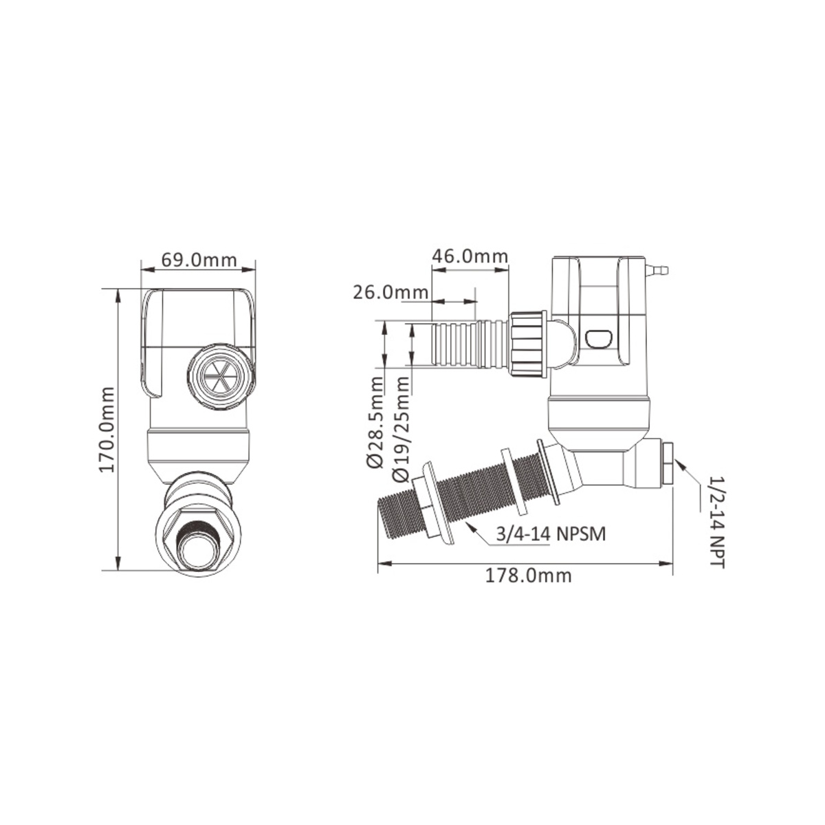 - Outlet Dia: 1" (25mm) 1 1/8" (29mm)