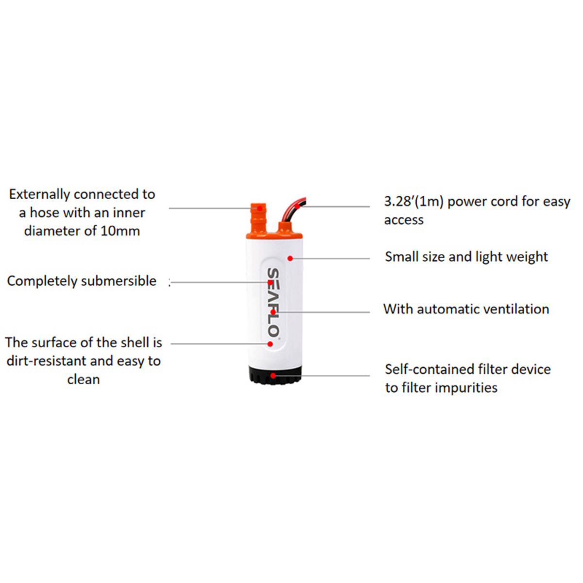 SEAFLO submersible pump with automatic ventilation,check valve and dry running protection,the compact immersion pump provides plenty of pressure for caravans or motorhomes.