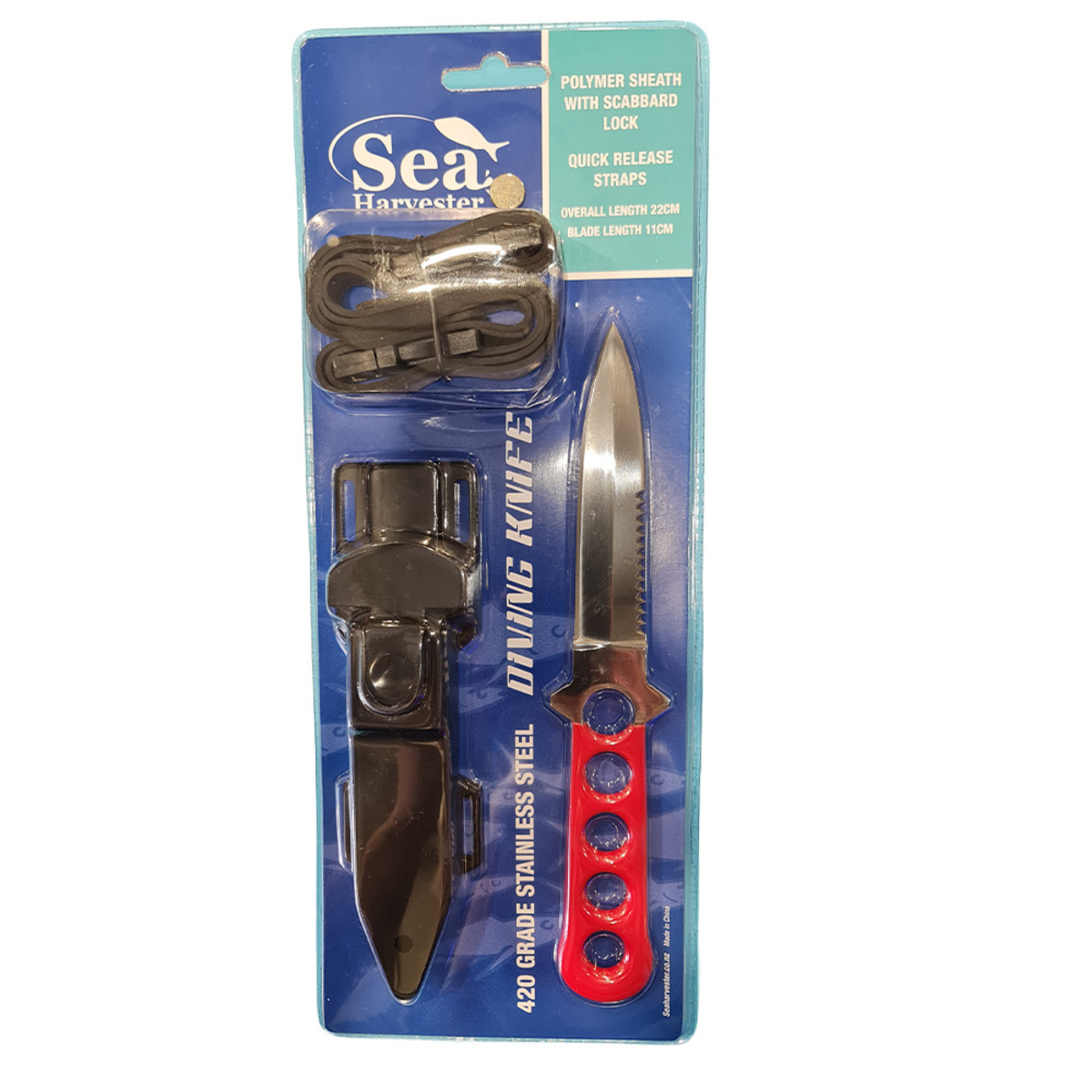 The K03 Seazone Fancy Dive Knife is a must-have for every diving enthusiast. This stainless steel knife features a red coated handle for easy visibility and a comfortable grip. It also comes with a black sheath for storage and safety. The K03 Seazone Fancy Dive Knife is a great companion that can withstand the challenges underwater.