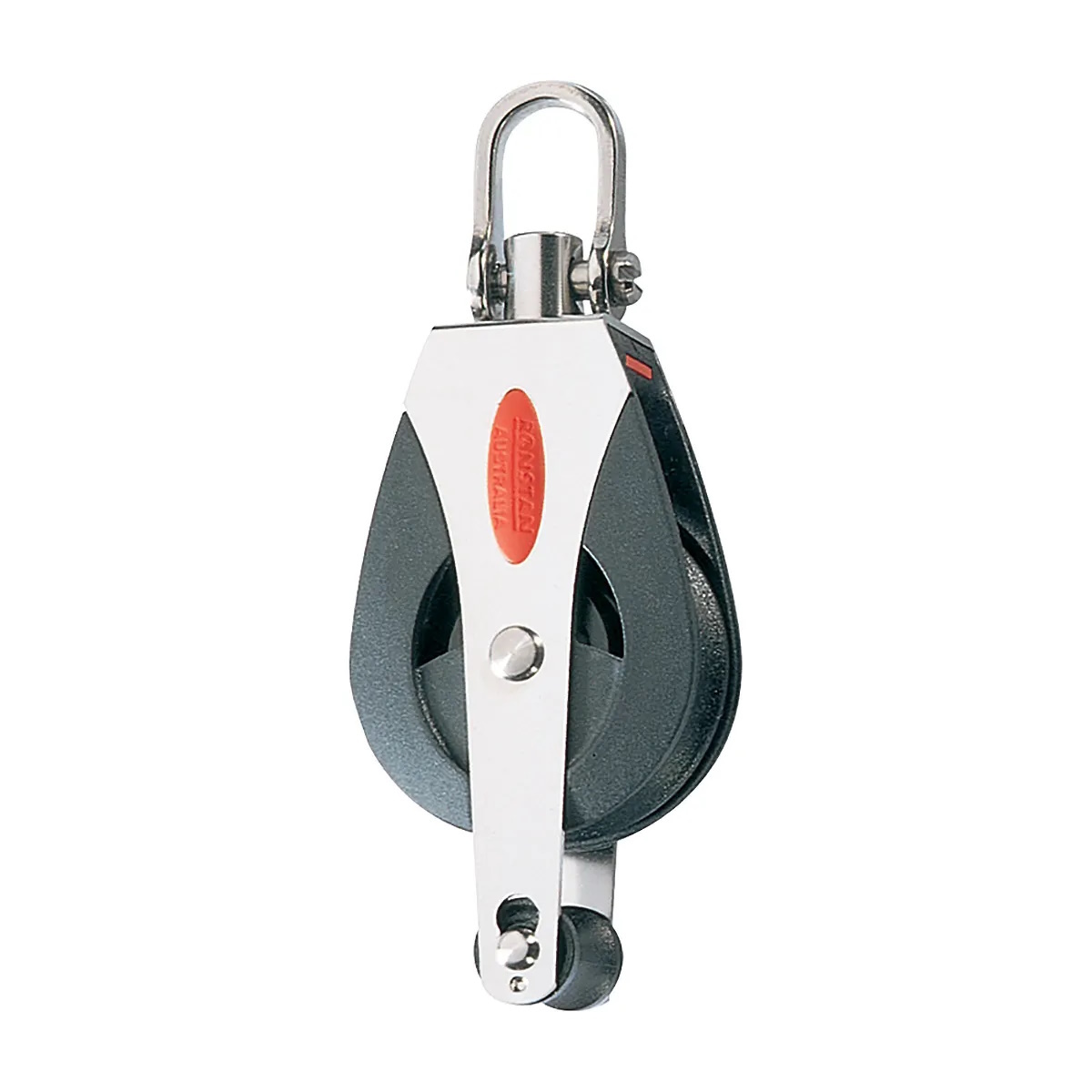 - Acetal ball bearings. UV stabilised Acetal sheave. Grade 316 stainless steel load strap and head fitting. Impact and UV resistant, fibre reinforced Nylon cheeks