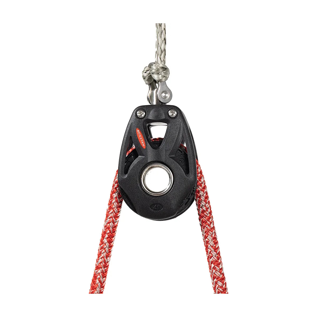 The RF48100 Single Block features a 40mm (1 9/16") sheave and incorporates our 2-stage bearing system. Ball bearings minimise friction while a secondary full-contact bearing maintains low friction across the full working load range. This product does not have a locking headpost, which is only available in the multiple sheave variants. RF48100 is free swivel rotation only. The RF48100 can accommodate a maximum rope diameter of 10mm (3/8").