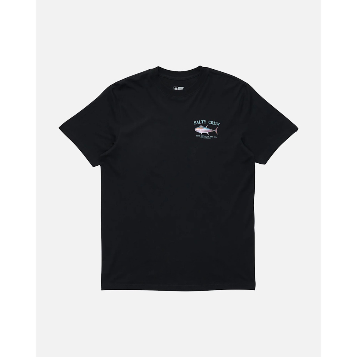 The Big Blue Premium SS Tee in Black is made from 160gsm ring-spun cotton jersey for soft, durable comfort. It features digital prints on front and back and a Salty Crew clamp label at the sleeve hem.
