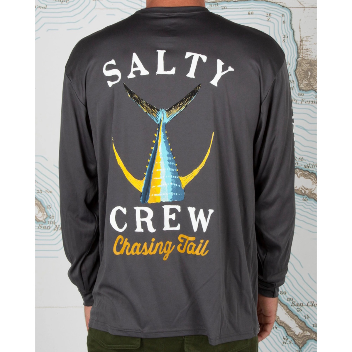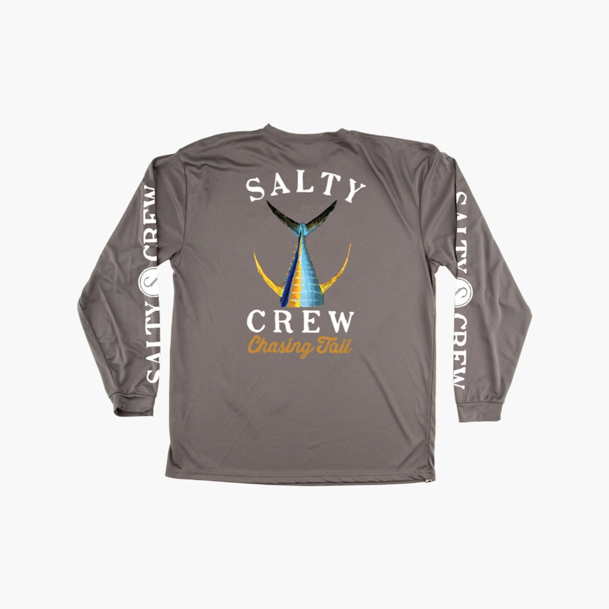 The Tailed Long Sleeve Sunshirt in Charcoal is a lightweight performance top made from quick-drying, moisture-wicking fabric with built-in UPF protection. Designed for all-day comfort in warm conditions, it features long sleeves for added coverage, a crew neckline, and a regular fit for easy layering. The shirt offers breathability and durability, making it a versatile choice for on and off the water.