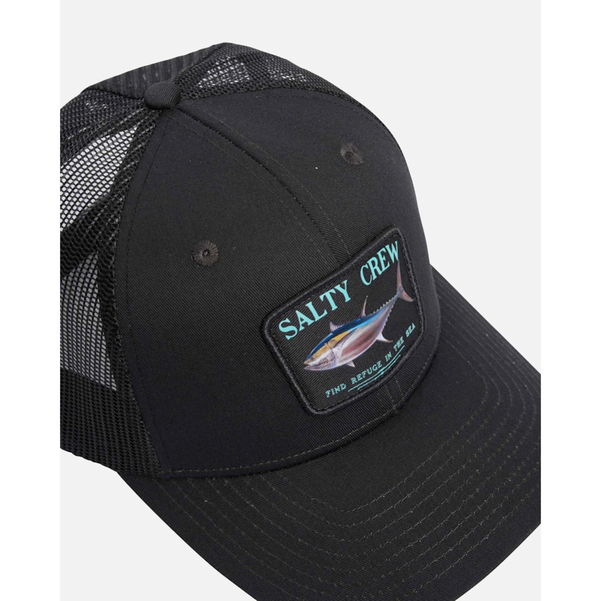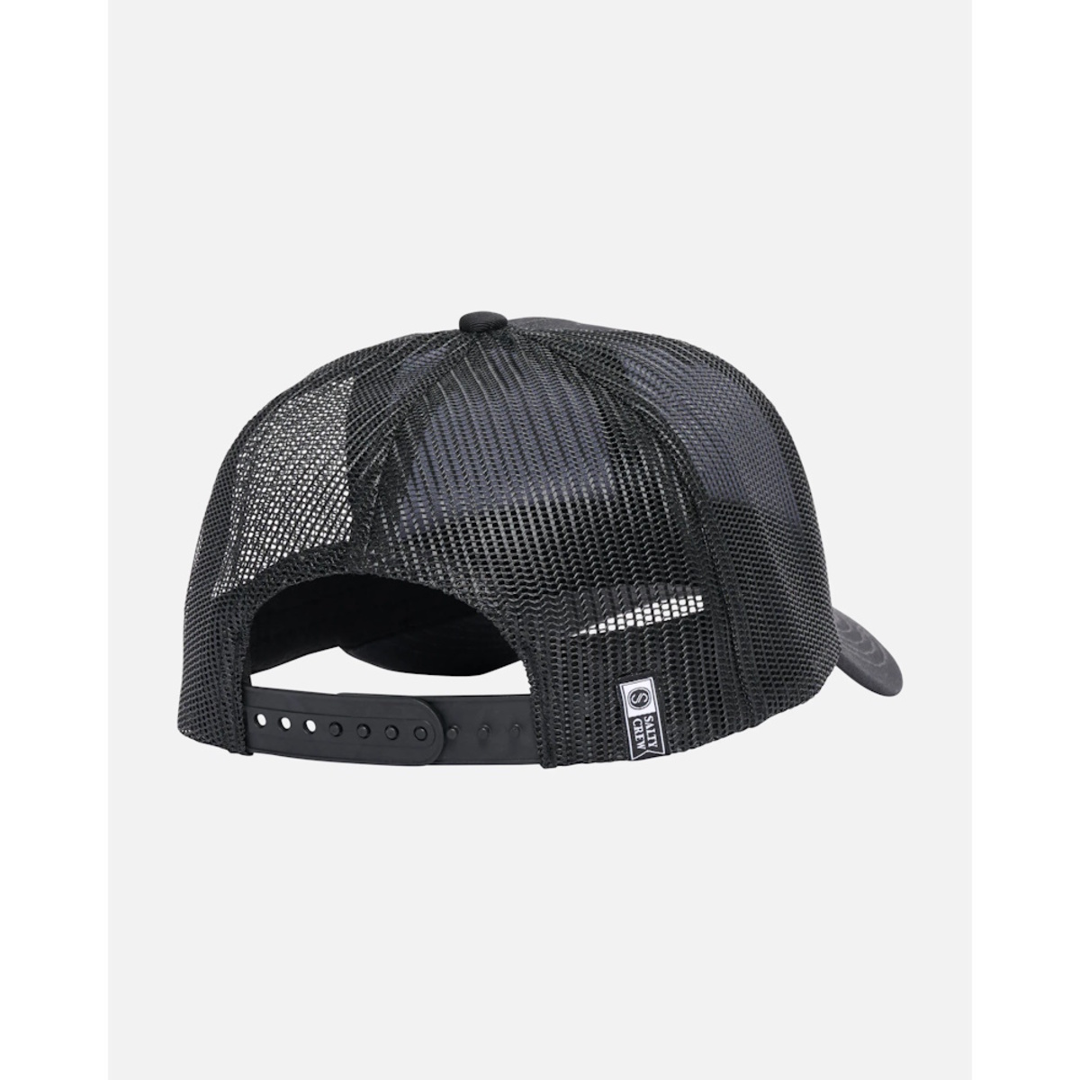 The Big Blue Retro Trucker Cap in Coal is a 6-panel cap made from 100% cotton twill with mesh back panels. It features a digitally printed twill patch with merrowed edge at the front.