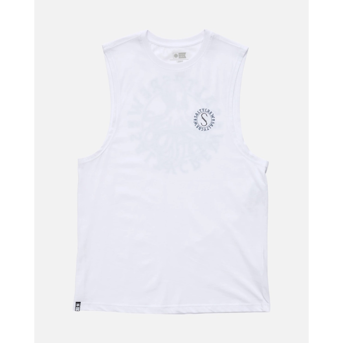 The Tentacles Muscle Tank in White is crafted from 160gsm ring-spun cotton jersey. It features a Salty Crew clamp label at the body hem and screen printed graphics on the front and back.