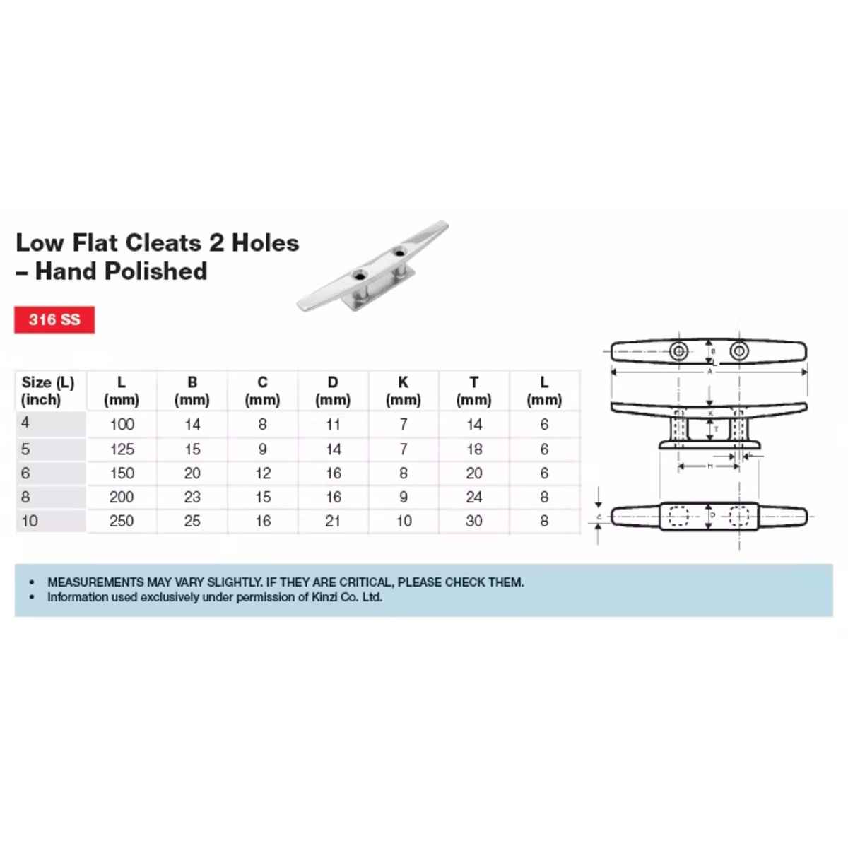 OCEAN X CLEAT HORN 2-HOLE SS 10"