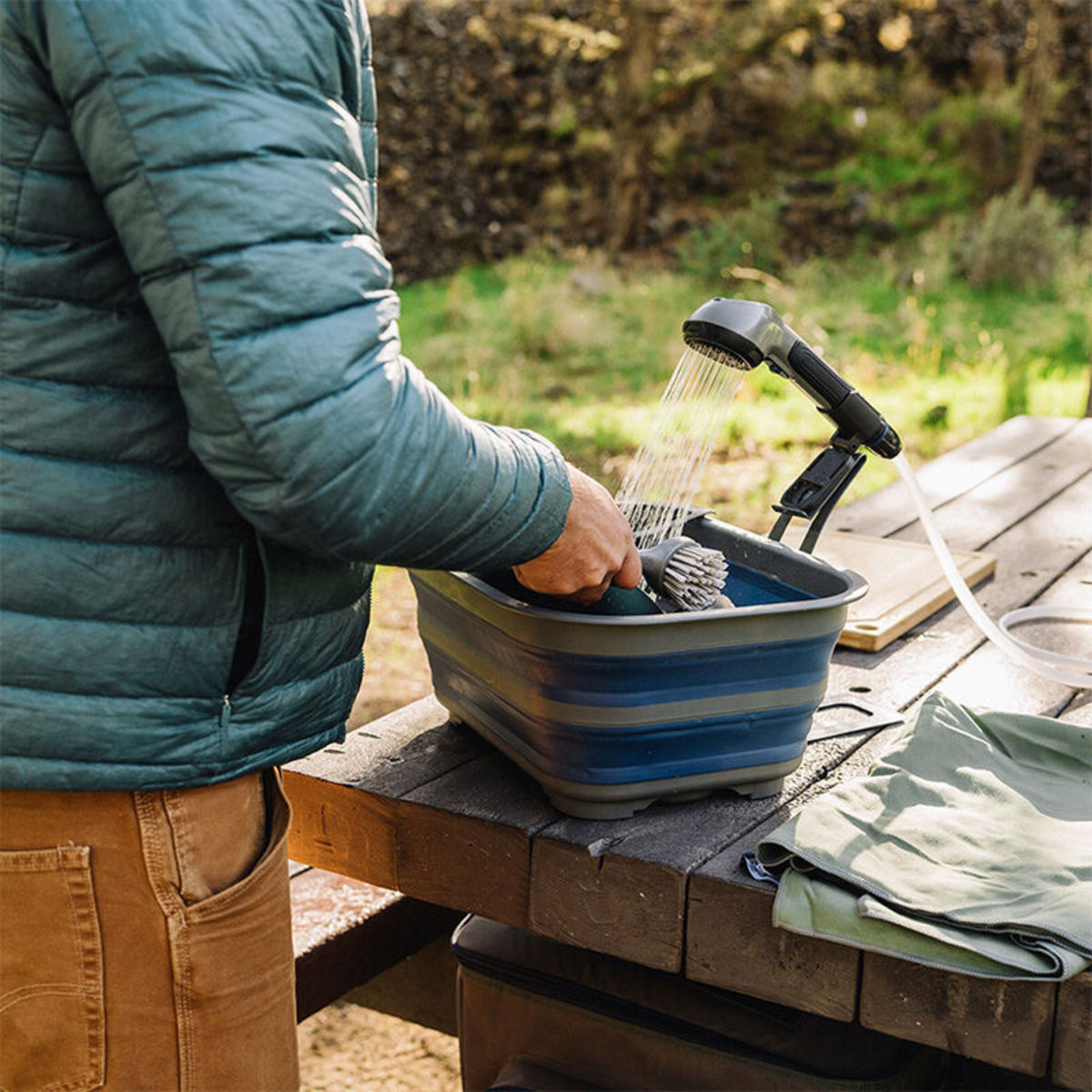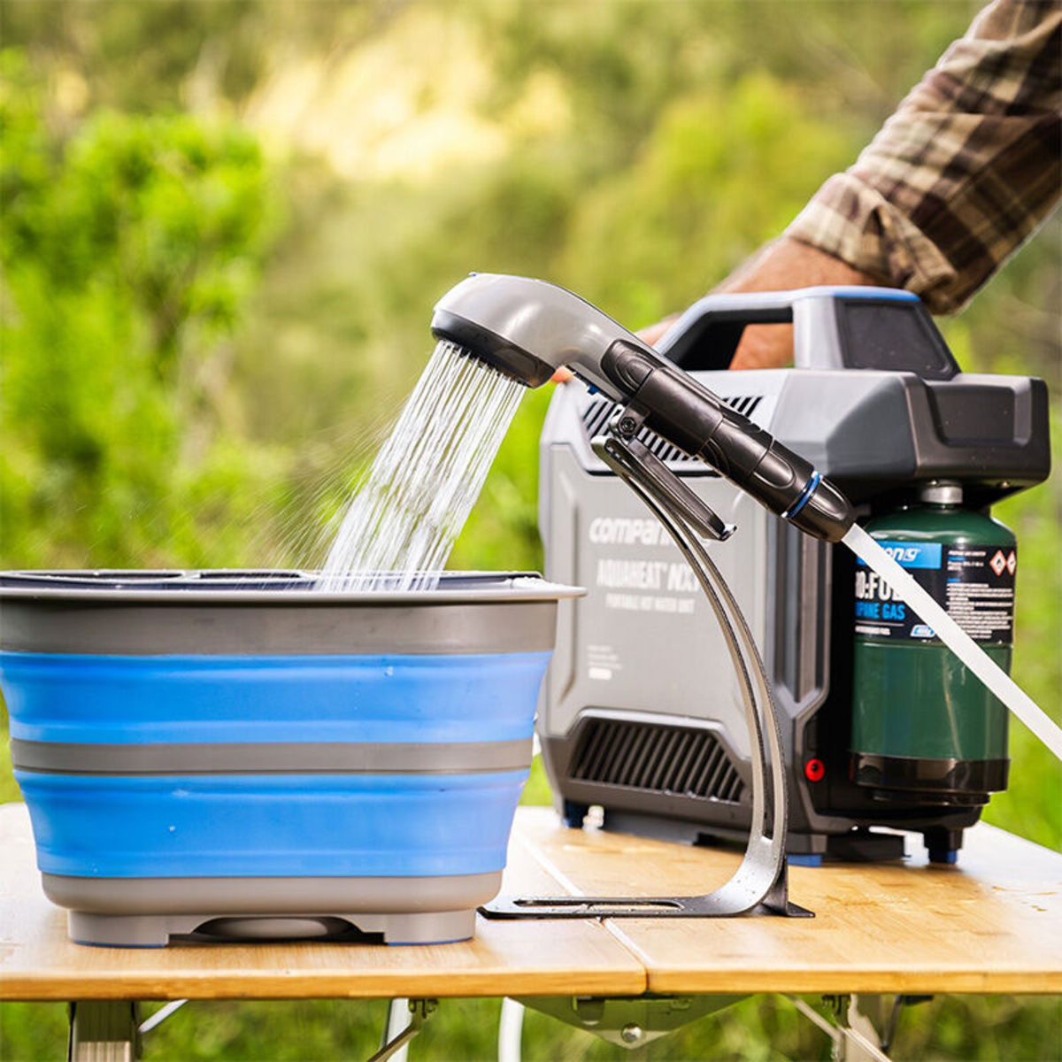 The Companion Aquaheat NXT Shower Stand takes your portable hot water system to the next level, transforming your NXT shower head into a hands-free camp tap. Perfect for washing dishes, cleaning gear, or scrubbing up before meals, this freestanding stand delivers convenient, table-height access to hot running water—no need to hold the shower head.