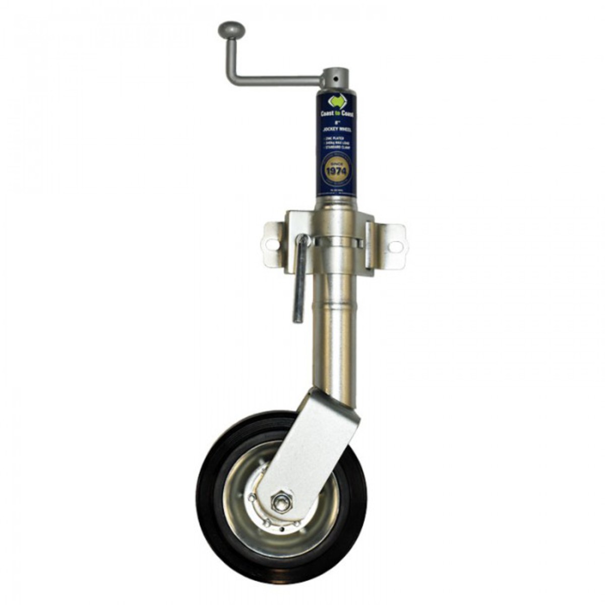 Available with standard or swivel clamps, the range includes 150mm (6 inch) and 200mm (8 inch) solid wheels or 250mm (10 inch) pneumatic wheels. Each unit is zinc-coated and has a 340 kg capacity with a lifting height of 254 mm.