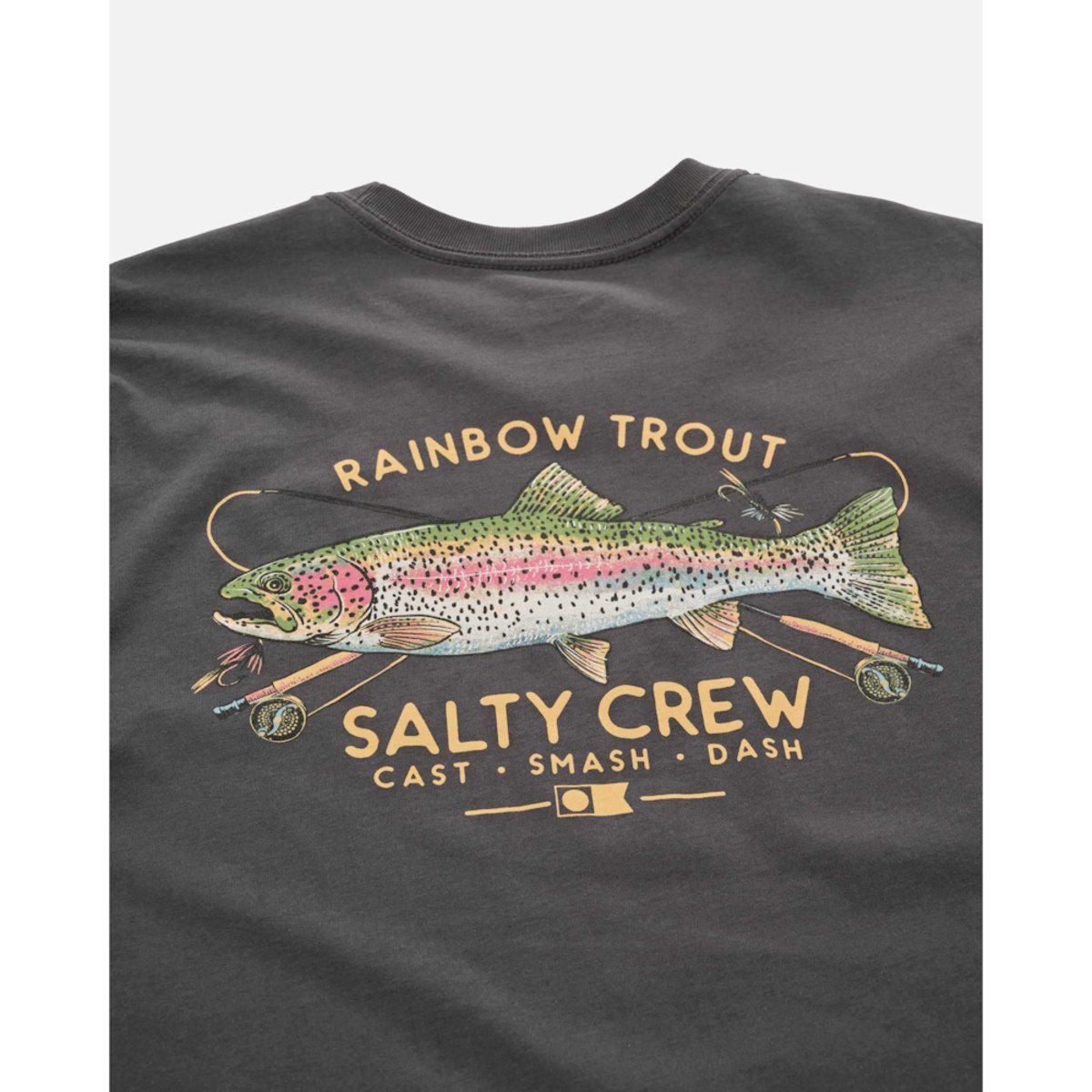 Trout Mount Premium SS Tee in Coal is made from soft spun cotton jersey, 160gsm in weight. Finished with Salty Crew clamp label at sleeve hem. Digital printed front and back prints.