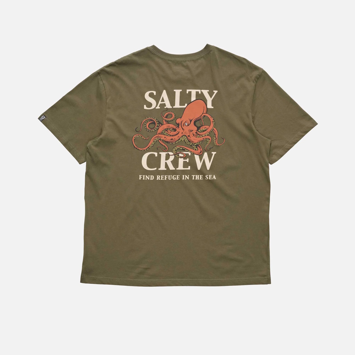 Ink Sling Classic SS Tee in Dusty Olive is made from soft spun cotton jersey, 180gsm in weight. Finished with Salty Crew clamp label at sleeve hem. Screen printed front and back prints.