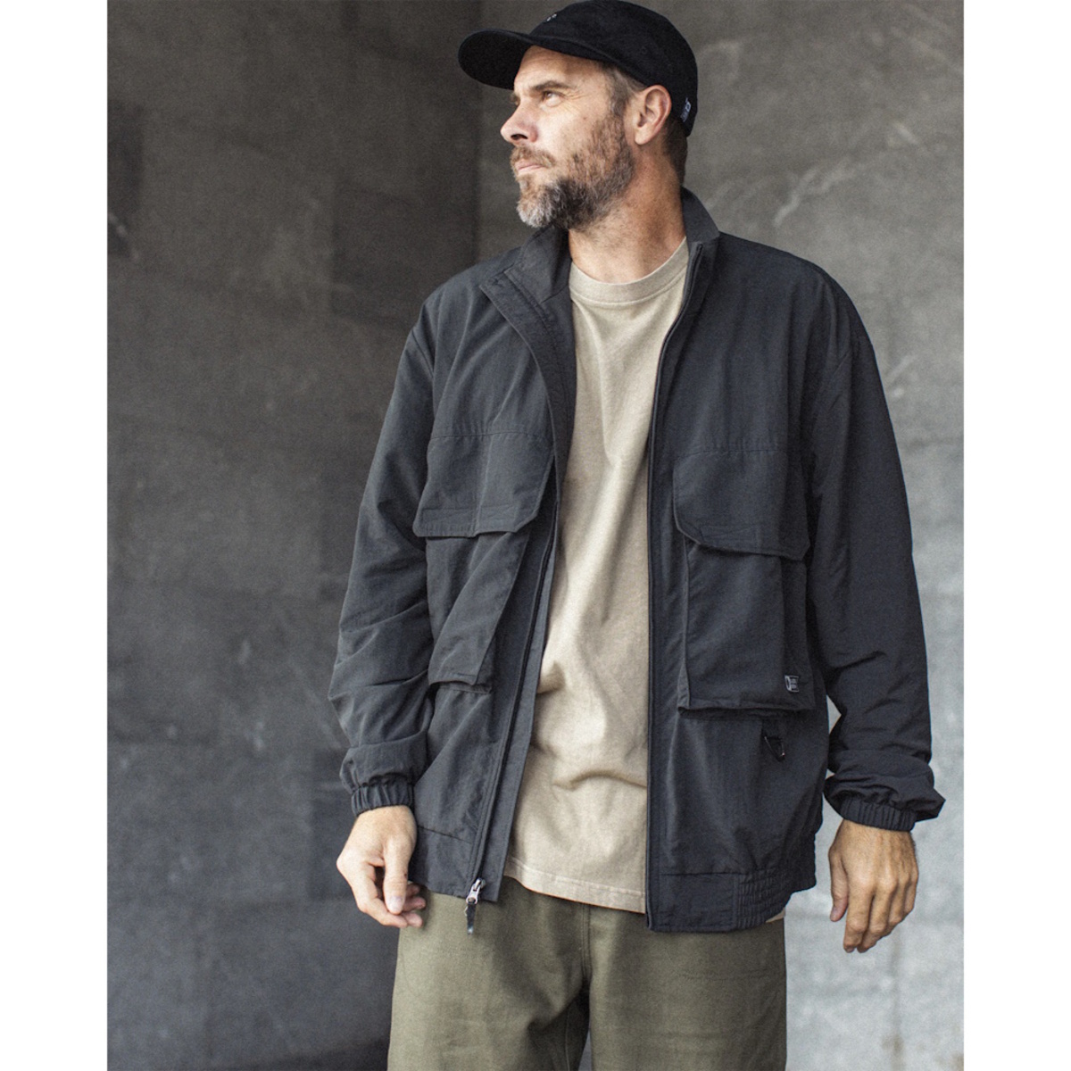 - Functional utility jacket with multiple pockets