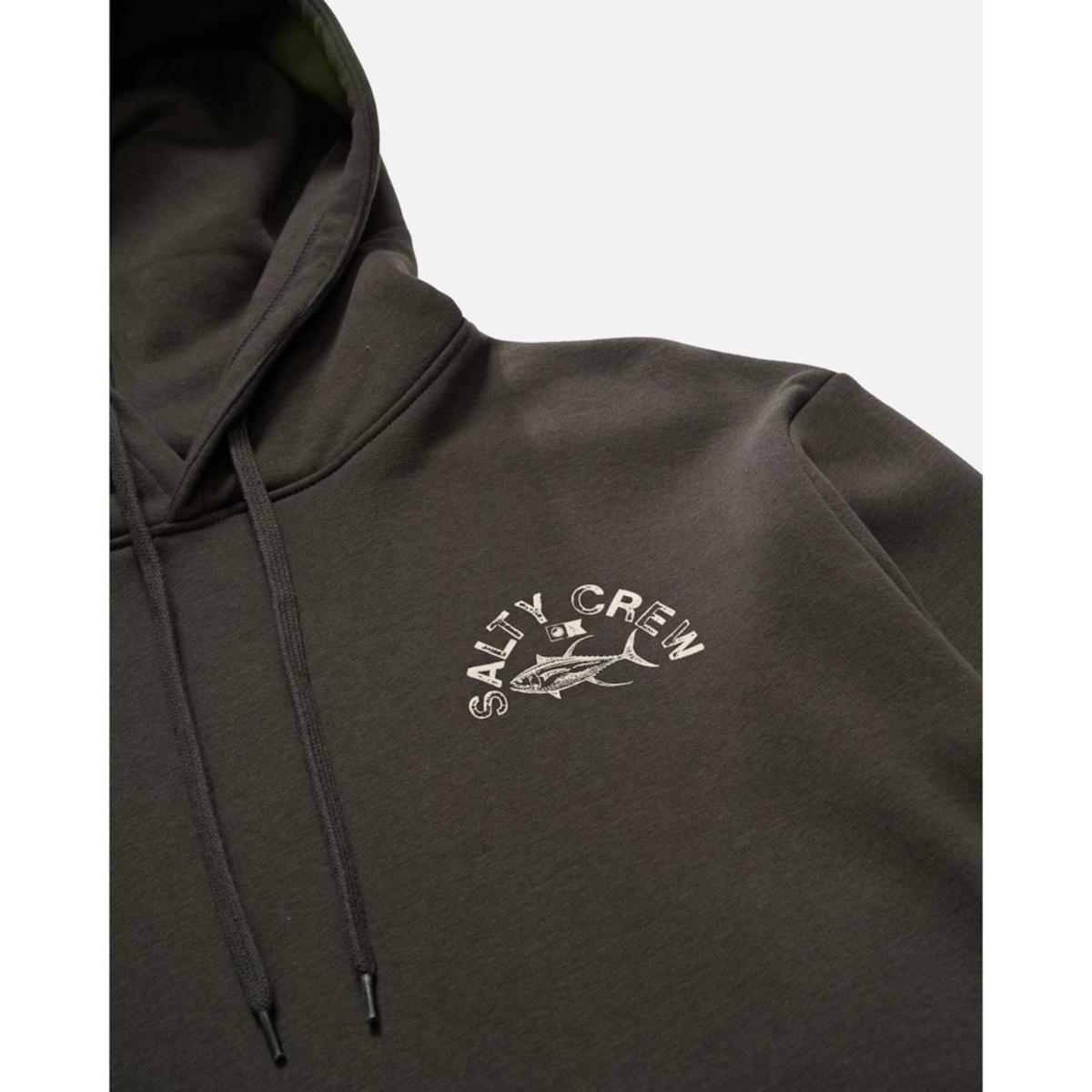 Stamped MW Hood in Vintage Black is made from our signature mid-weight Cotton/Polyester Brushed Fleece, 300gsm in weight. Featuring two-piece hood with encased drawcord, rib knit cuffs & hem, self-fabric kanga pocket & Salty Crew clamp label at hood opening. Screen Printed front and back prints.