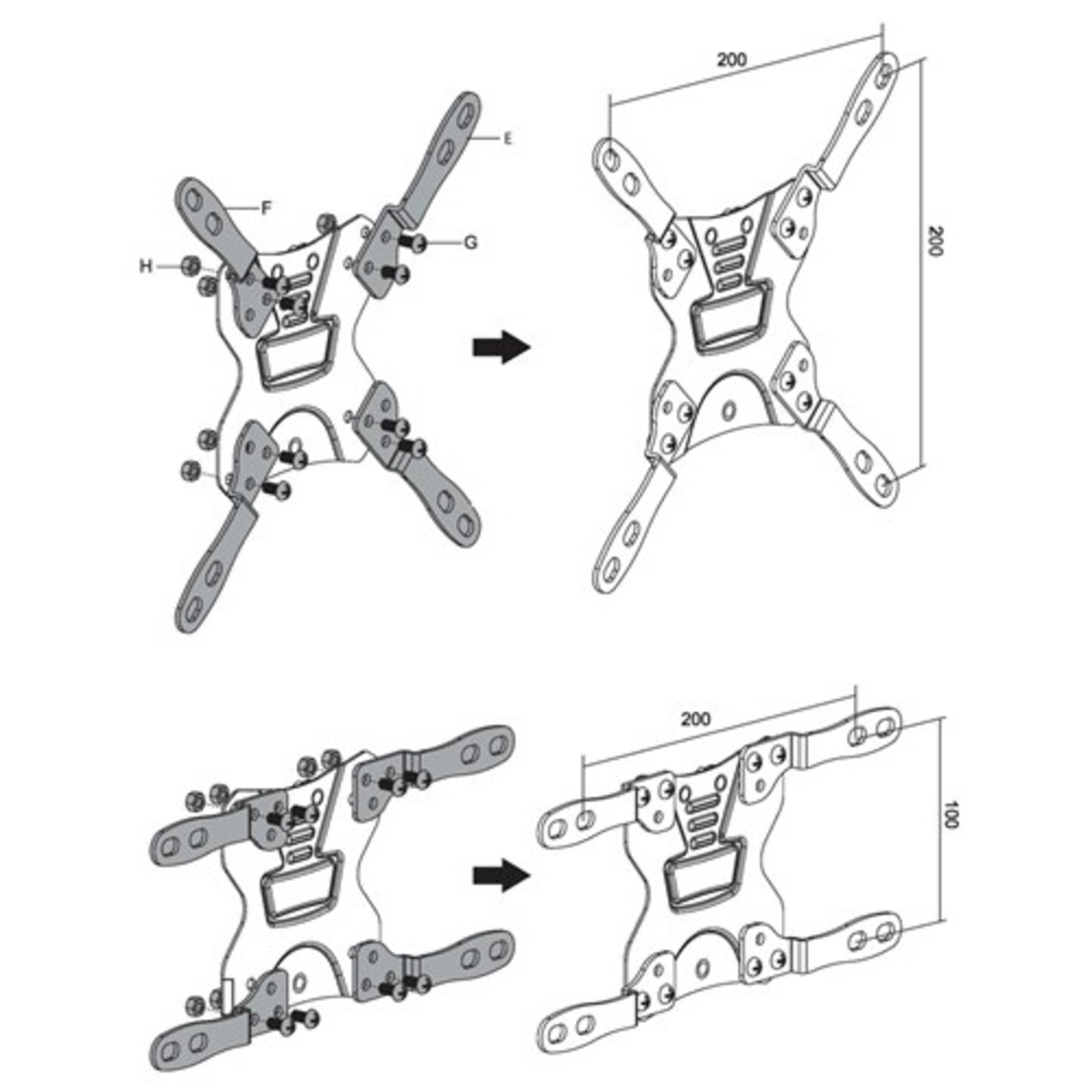 Tilt, swivel and extend your TV up to 366mm from the wall in every direction for easy viewing. It can also can be folded when not in use for saving space. In-arm cable clip routes cables for a clean appearance. VESA-compatible fits 75 x 75, 100 x 100, 200 x 100, 200 x 200 hole patterns.